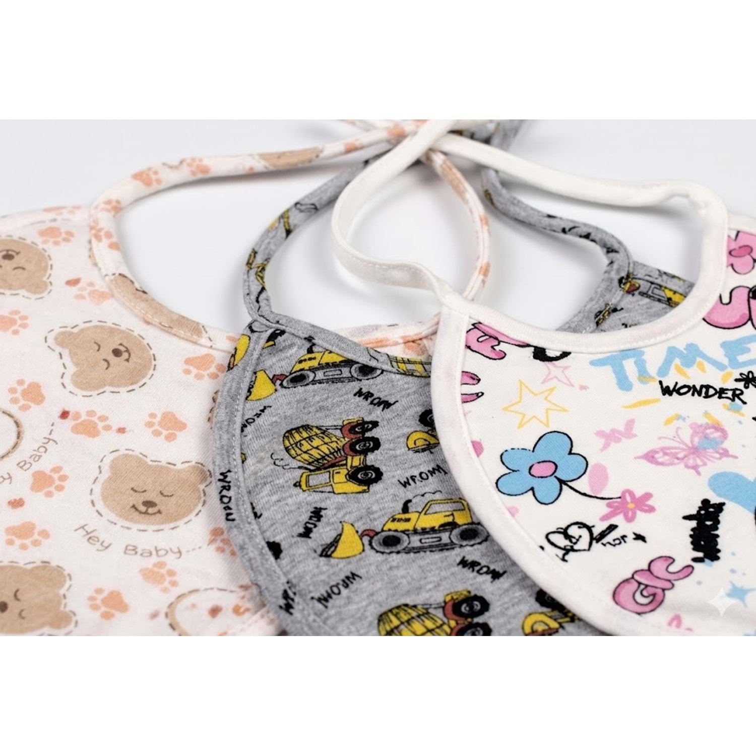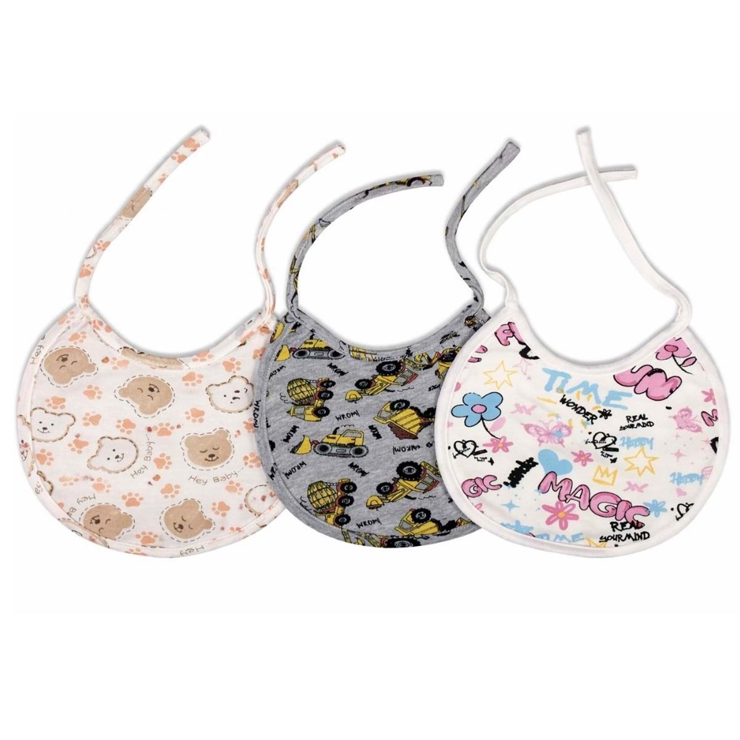 3'lü Paket Bebek Mama Önlüğü Seti - %100 Pamuklu
